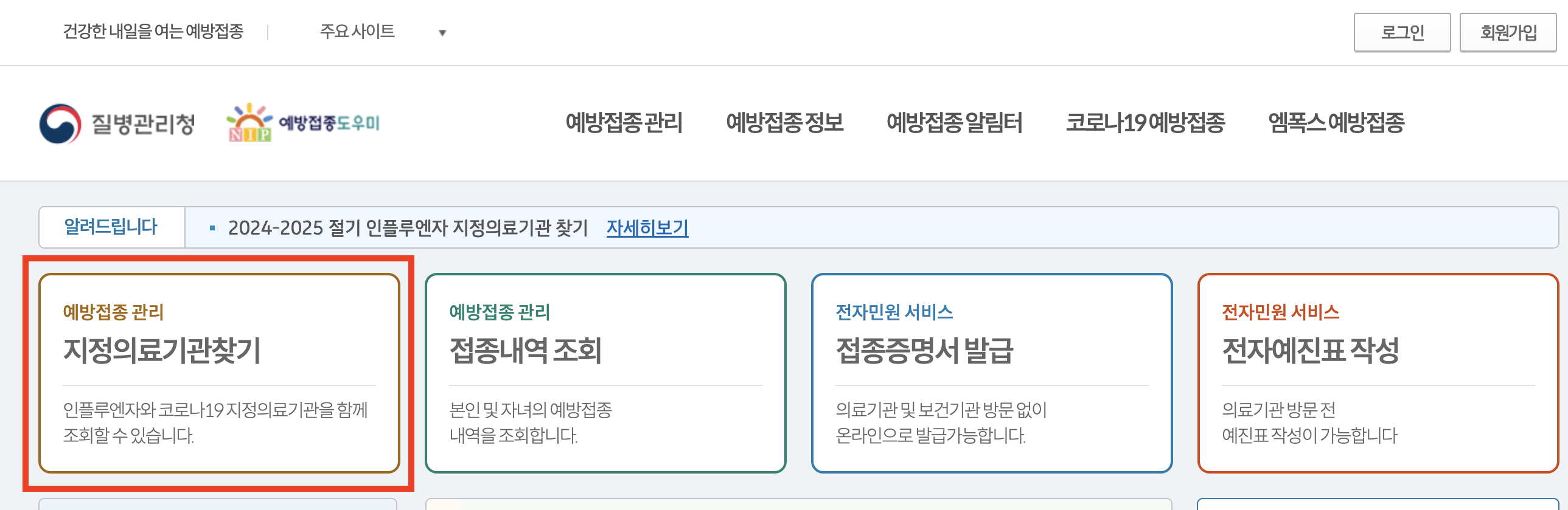 무료 접종 대상자 여부와 가까운 지정 의료기관은 아래의 질병관리청의 예방접종도우미 웹사이트 (https://nip.kdca.go.kr)에서 확인할 수 있습니다.